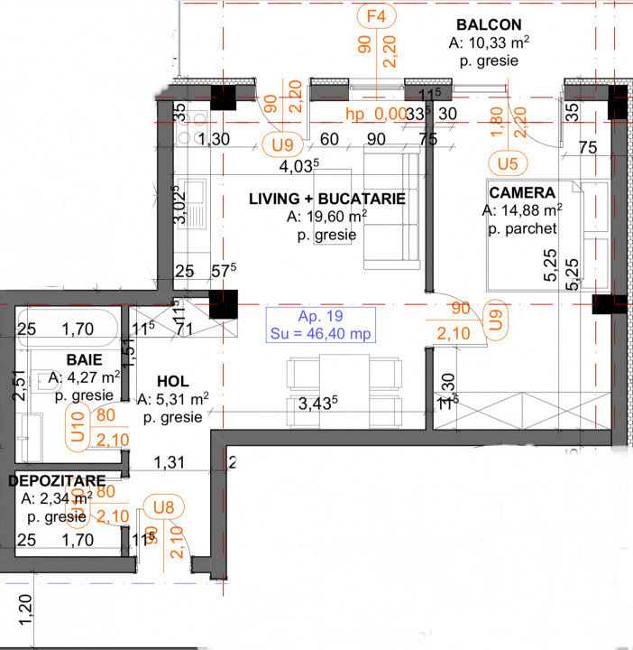 * Suprafata utila: 46,4 mp
