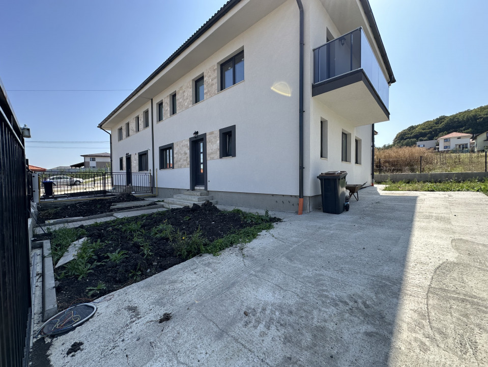 Compania imobiliară Pomarin Home va propune spre vanzare o casa tip duplex cu o arhitectura moderna si spatii largi, practic compartimentate. Imobilul este amplasat in localitatea Chinteni , in apropiere de transport in comun, magazin, farmacie, școala, Etc. Casa este construita din materiale de constructie de calitate zidăria din caramida Porotherm, beton armat, izolat cu polistiren 10 cm . Imobilul este situata intr-o zona linistita, ferita de circulatie si galagie, formata doar din case. Dispune de o suprafata utila de 120 mp situat pe o parcela de teren de 250 mp si parcare pentru 2 mașini. Este dispusa pe 2 nivele, P+E astfel parter: un hol spațios, un spațiu de depozitare, baie de serviciu, un living spatios cu dining si iesire la terasa si gradina. Etaj: compartimentat in 3 dormitoare separate, 2 bai, 1 dresing, 2 balcoane. Imobilul beneficiaza de centrala termica pe gaz si de geamuri din termopan cu tamplarie din PVC cu 3 sticle , încălzirea in pardosea toata casa. Spatiul locativ este foarte generos iar zona de zi este impresionanta. Se ofera spre vanzare pregatita pentru finisaje la stadiul de semifinisat, cu sapa autonivelanta, peretii gletuiti si instalatiile trase la pozitie.